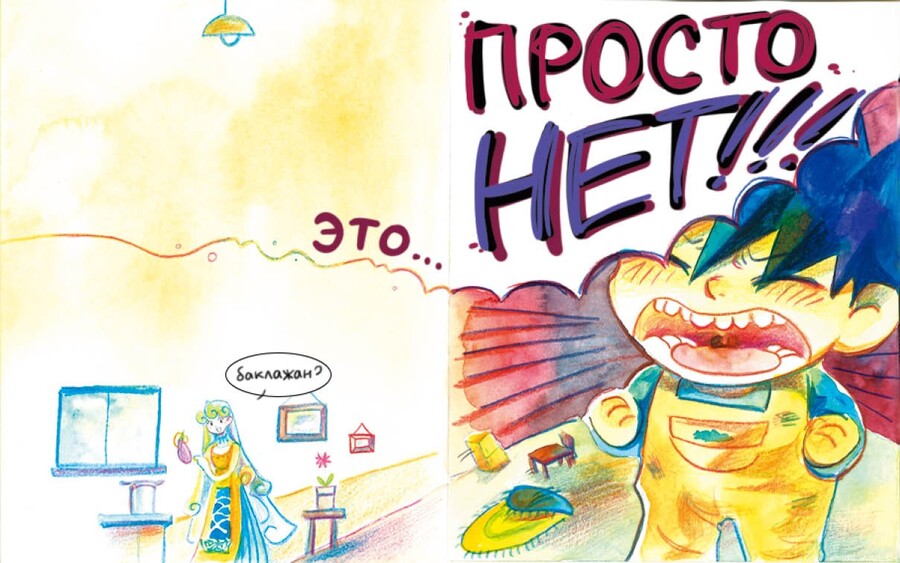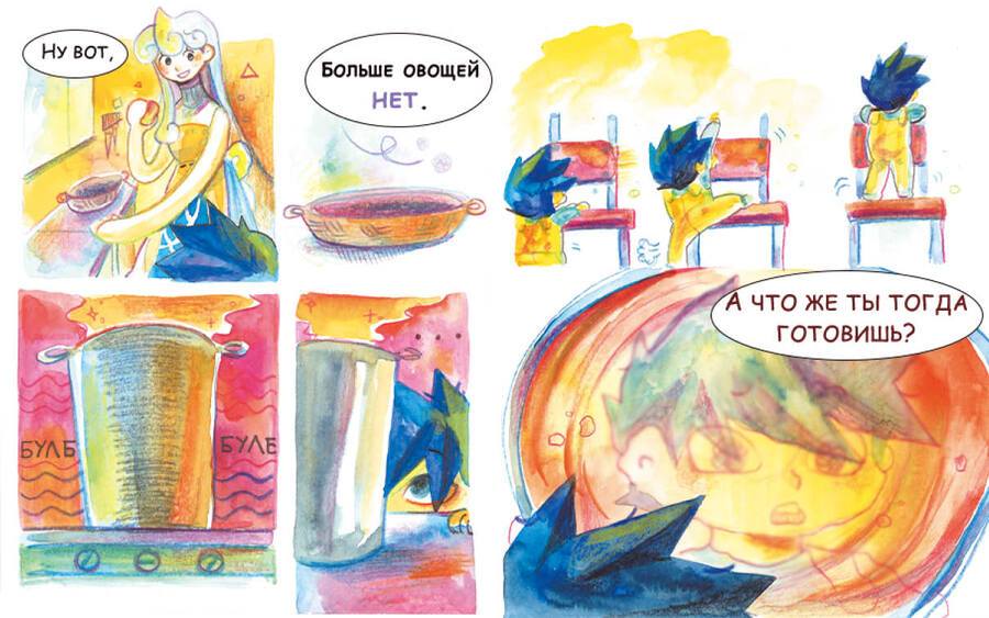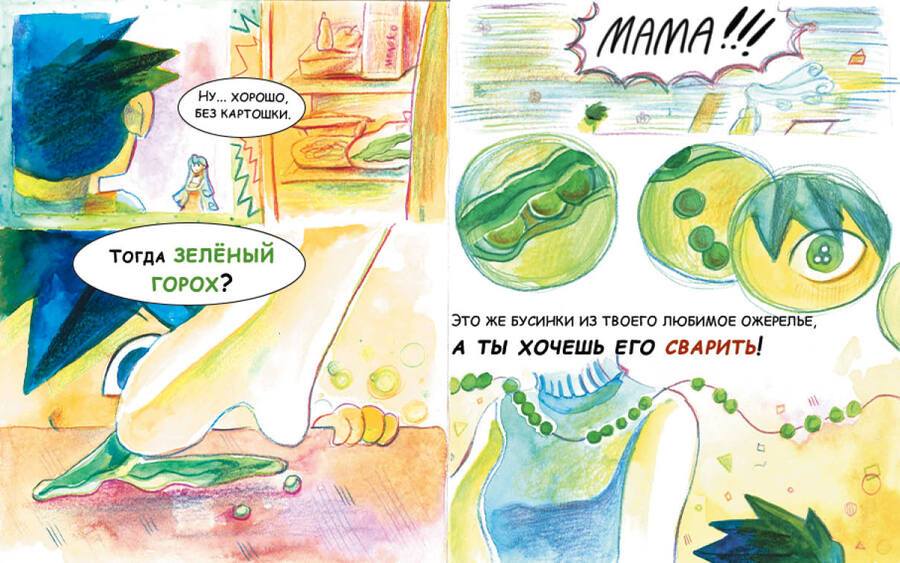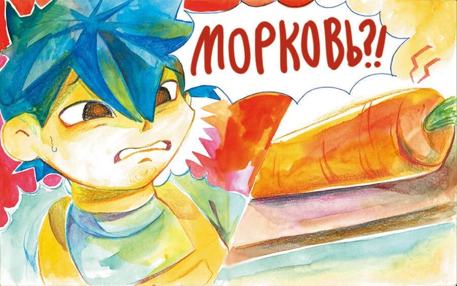 Он объясняет маме, почему морковь нельзя использовать в блюдах, а потом объясняет, почему другие овощи тоже нельзя использовать.