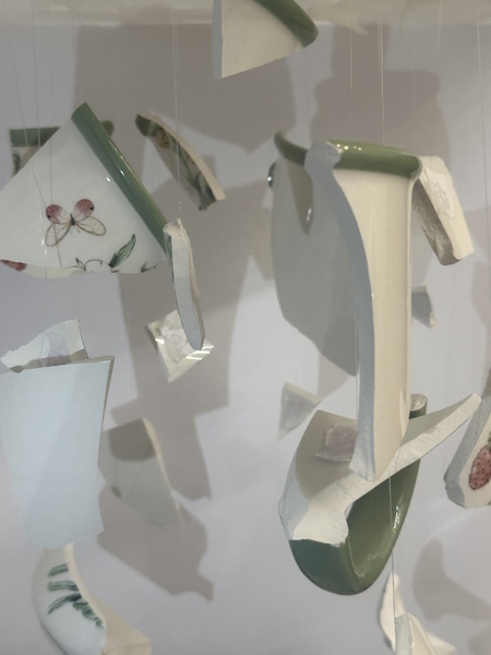 Категории объектов, используемых в инсталляции, сильно различаются. Если подойти ближе к произведению искусства, становятся видны такие вещи, как детские игрушки, подкова, инструменты и книги. Некоторые предметы принадлежат Паркер, но большинство из них она получила от друзей или от продажи автомобильных ботинок.