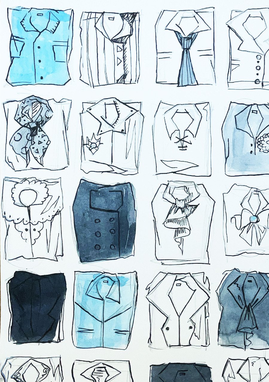 Этот скетчбук полон образов, воплощающих мысли о формальной одежде, и хранит в себе историю о самовыражении и любви к своей работе.