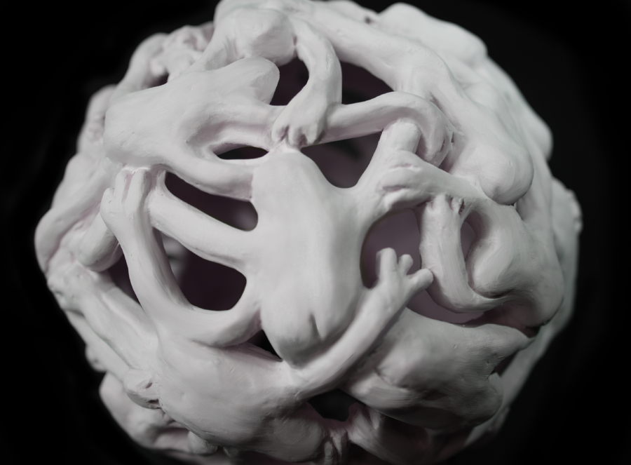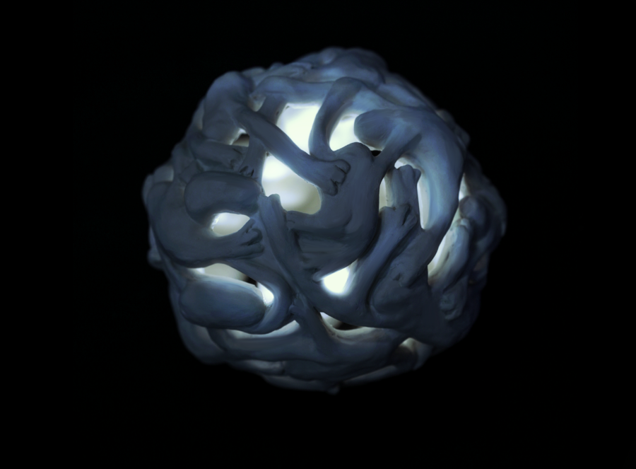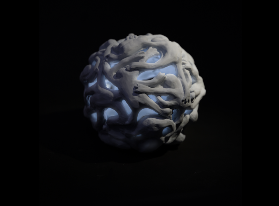 Promt: 3D-rendered glowing ceramic cube with a matte white finish. The sides of the cube are sculpted with expressive, abstract faces in various emotions. Warm light glows softly from within the cube. The background is a minimalist, dark gray gradient to emphasize the cube’s glowing effect.