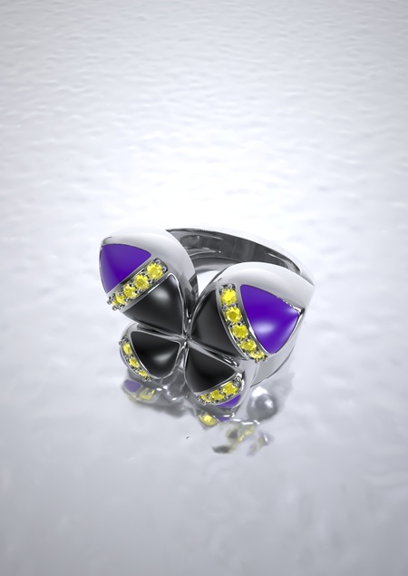 Перед созданием симуляций, необходимо было создать 3D-модели изделий. Частично они были сделаны в Zbrush, далее моделировались в Matrix по готовым технологичным эскизам. Для ролика было выбрано кольцо в виде бабочки.