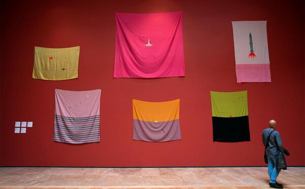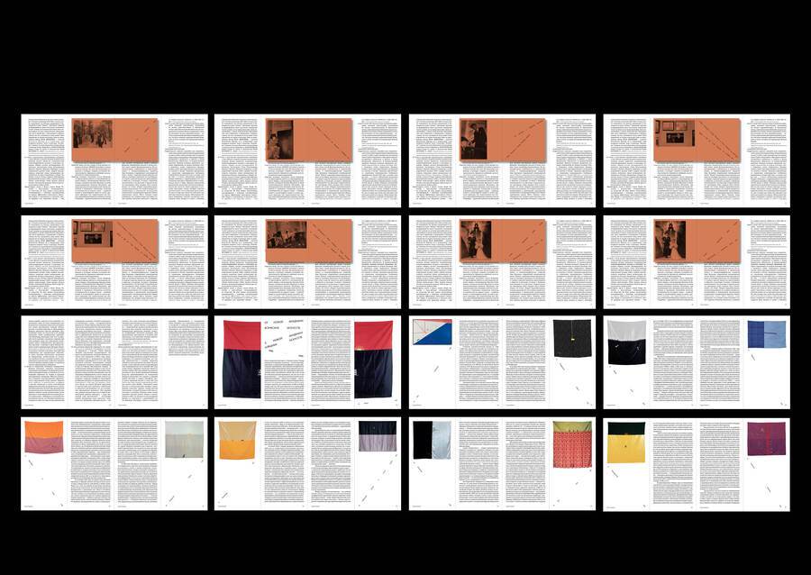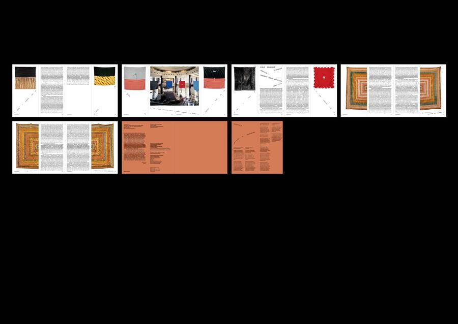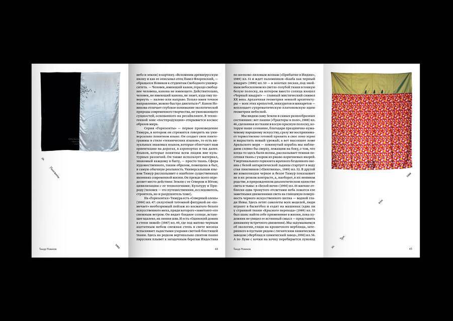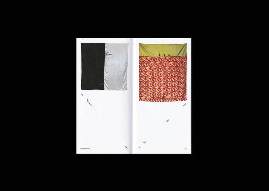 Ткань важный материал в творчестве Тимура Новикова. Ткань имеет особенную пластику, может мяться, складываться, в нее можно что-то заворачивать. Бумага имеет схожие свойства, поэтому издание к выставке по форме превращается в брошюру с множеством клапанов.
