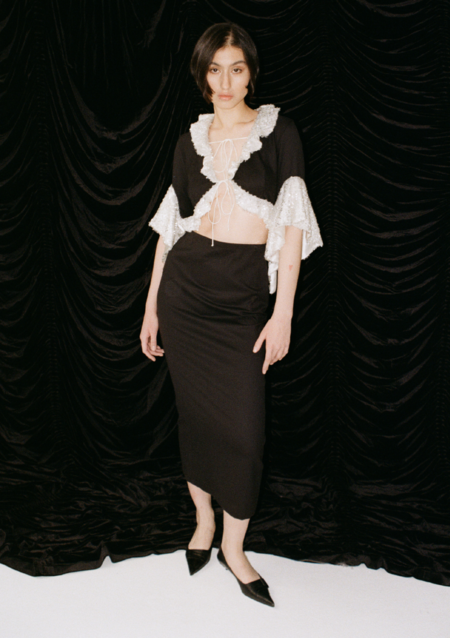 The FW’24/25 collection is dedicated to rethinking the most important stylistic techniques and codes in the brand’s almost 15-year history. Here, the designer gives new life to familiar iconic silhouettes and complements the brand’s provocative ironic aesthetics, which has been growing year after year, with new meanings, mixing transparent mesh and sequins, leather and mirror skirts, shiny fabrics, lace and prints that refer to the nature of the native land. The SS’24 collection, inspired by the eclecticism of romance and emancipation, is filled with signature provocation and even in the fonts refers to the eroticism of the 80s. The main references were the pompous, depraved images of Marie Antoinette and the indulgent cunning of Glenn Close as the Marquise de Mertelle in «Dangerous Liaisons». Andrey Artemov mixes all this with decadent aesthetics and the beauty of fading, forever imprinted in the memory in old photographs.