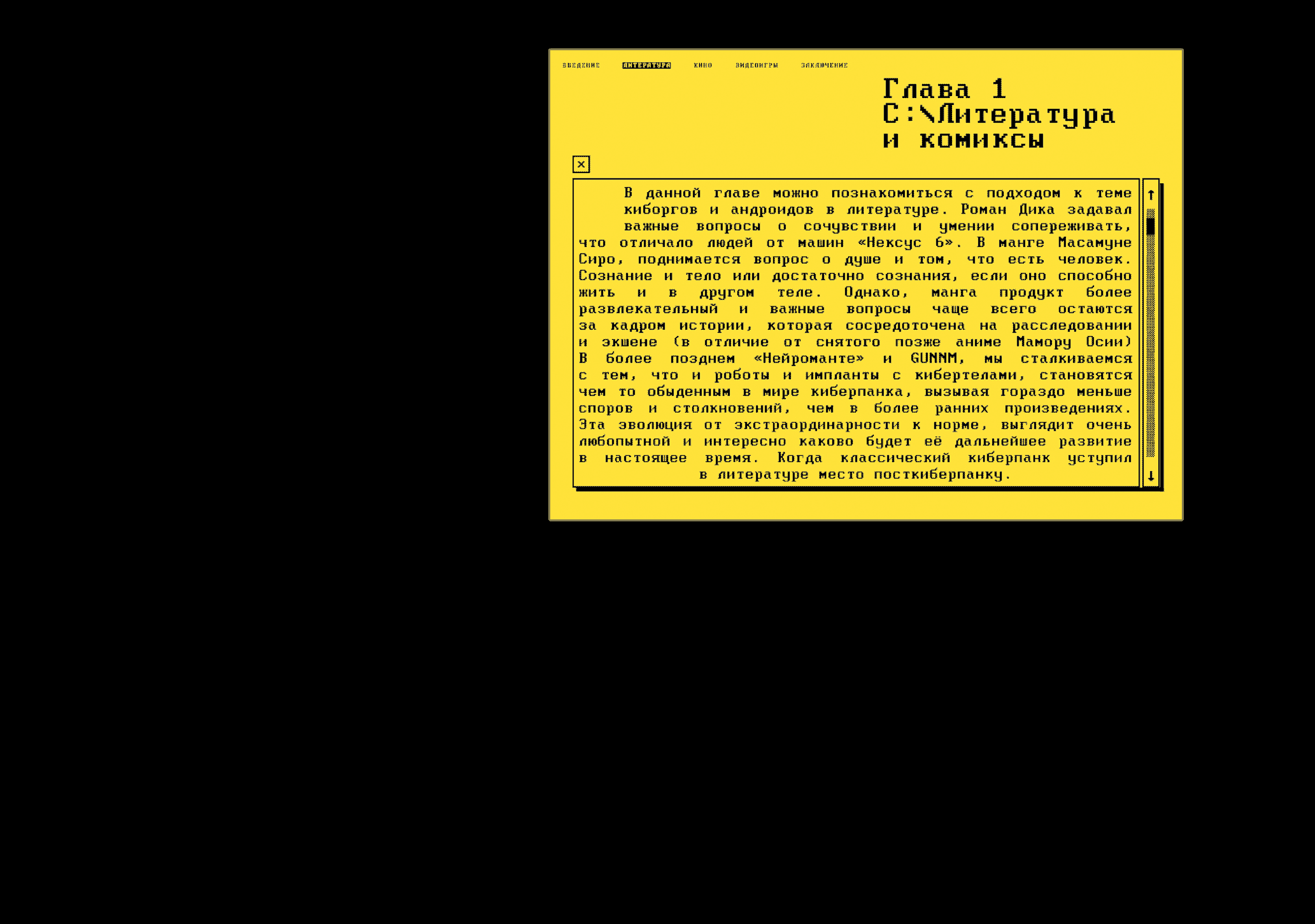 Автор рассматривает представления о роботах и роботизированных людях в разных произведениях жанра киберпанк.