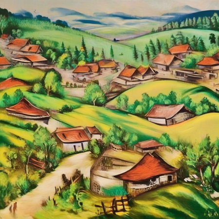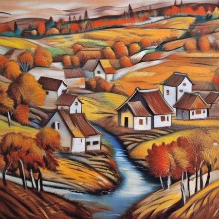 Выборка из 60 картин оказалась более чем достаточной для того, чтобы нейросеть на хорошем уровне переняла черты Шагала — сочетание прямых ломаных линий, дробление форм на геометрические элементы и контрастные переходы в цветах