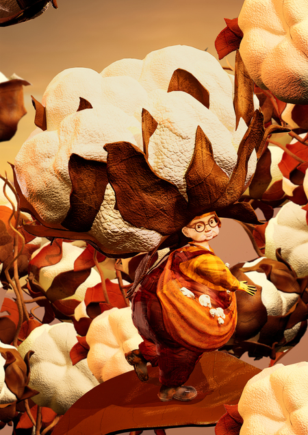 Коттони часто сложно заметить среди «коробочек» хлопка. Поэтому, собирая хлопчинки на работе она выглядит максимально естественно.