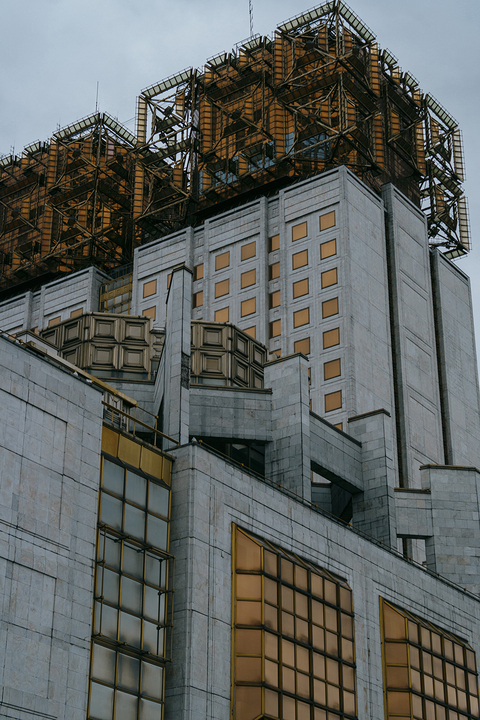Мои работы, сделанные в Российской Академии Наук, передают то, как представляли далёкое будущее в эпоху 80-х. Необычные, до этого никем не используемые формы, золотые элементы, железо, металл, но в то же время строго выверенные, геометрически правильные объекты, фактура — всё это про РАН.