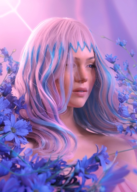 Prompt: Advertising posters hang on the street. The poster advertises Belarusian dye for brightly colored hair. Dye for young people with colored hair. Advertising in pastel pink, blue and purple colors. Poster paint packaging acts on the environment like 3D magic. Logo of the brand is contemporary, eye-catching logo for the Belarusian hair dye brand «Valoshka.» The central element is a vibrant, stylized cornflower petal with zigzag edges, symbolizing the brand’s association with hipsters and brightness. The word «Valoshka» is written in bold, elongated serif font, evoking a sense of ancient wisdom and heritage. The overall design captures the essence of individuality, self-expression, and youthful energy, making it an ideal representation for a brand that embraces creativity and personal style. The logo is both distinctive and memorable, immediately grabbing attention and leaving a lasting impression., 3d render, photo, cinematic, poster