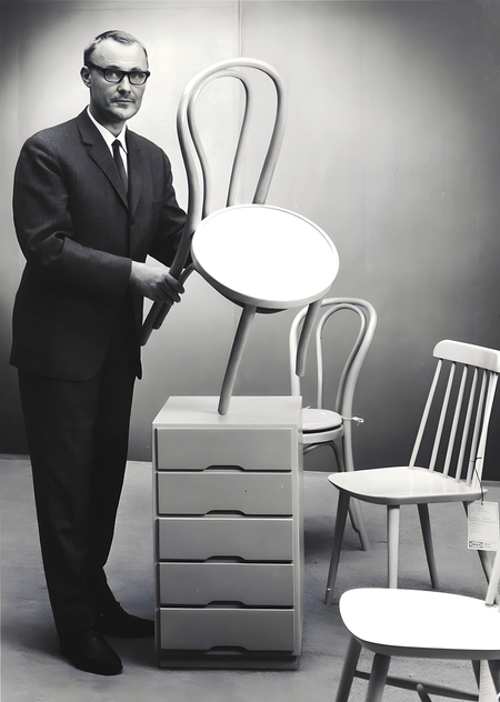 Основатель IKEA Ингвар Кампрад со стулом Ögla (он же — модель 18 Thonet).