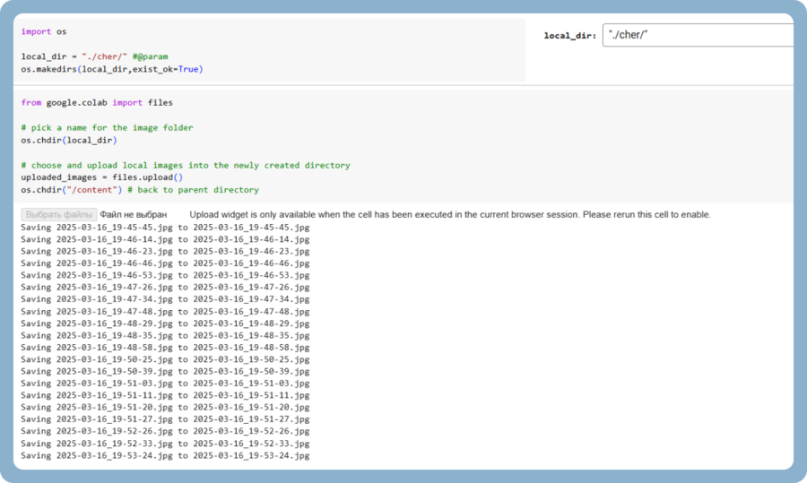 Далее было необходимо подгрузить собранные изображения и убедиться, что это всё работает правильно.
