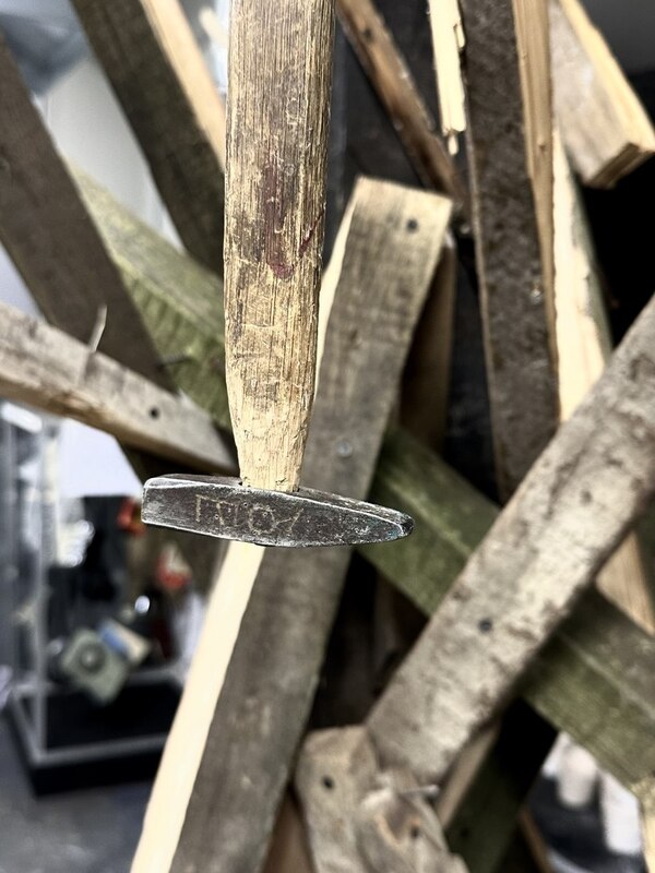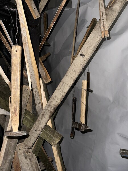 Подвешенные на гвоздях молотки, подобно плодам этого дерева, становятся метафорой человеческой деятельности и созидания. Элементы инсталляции, некогда являвшиеся частью чего-то большего, теперь обретут новую жизнь в форме дерева, которое прочно укоренено в прошлом, но устремлено в будущее.