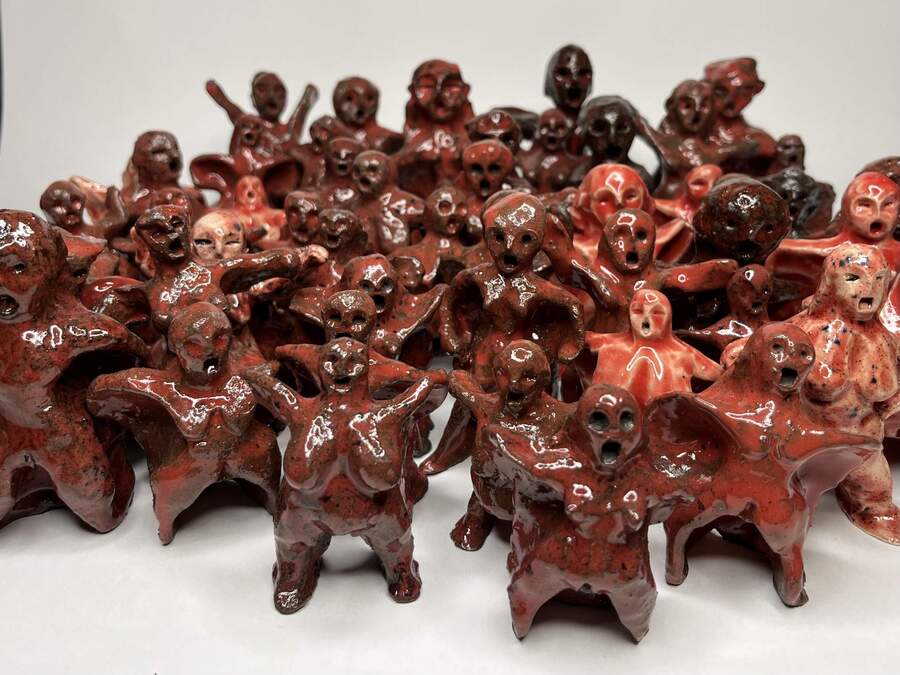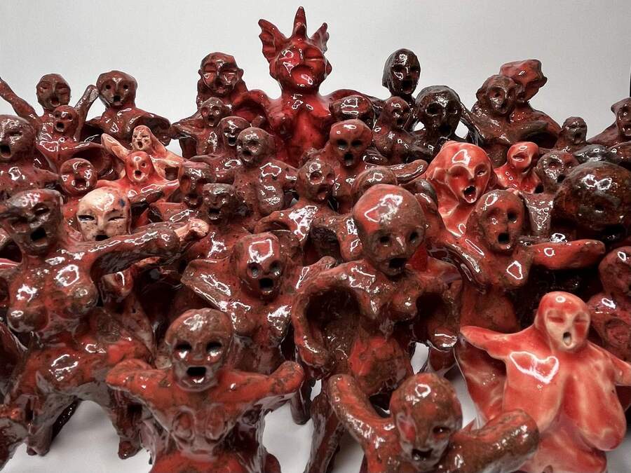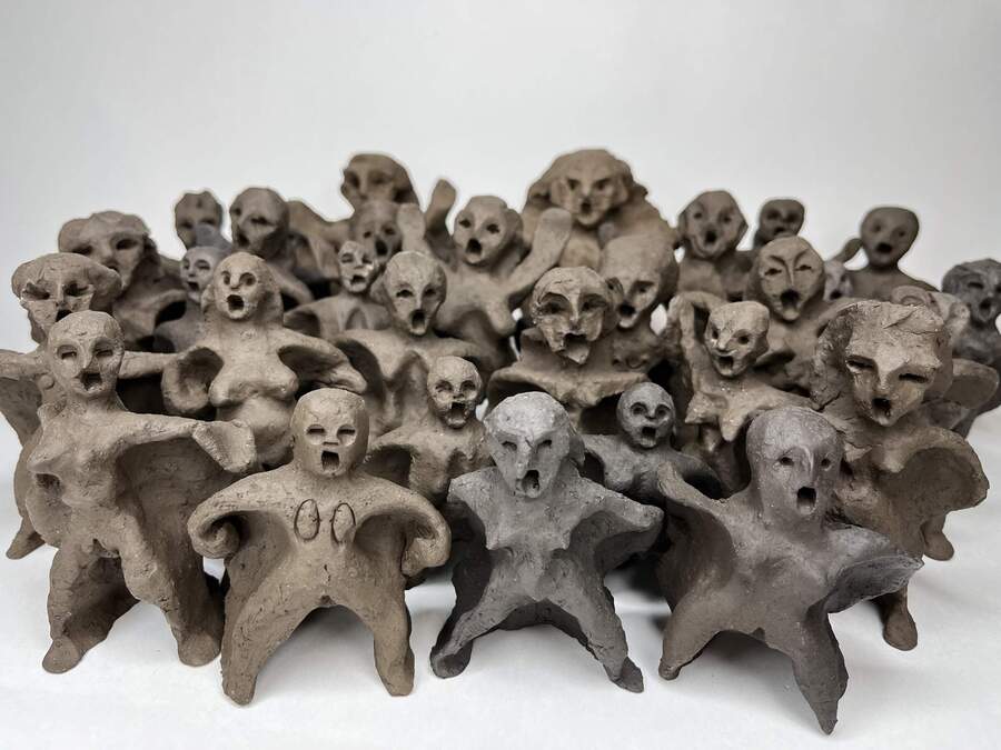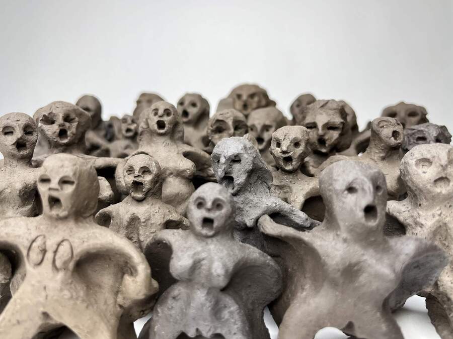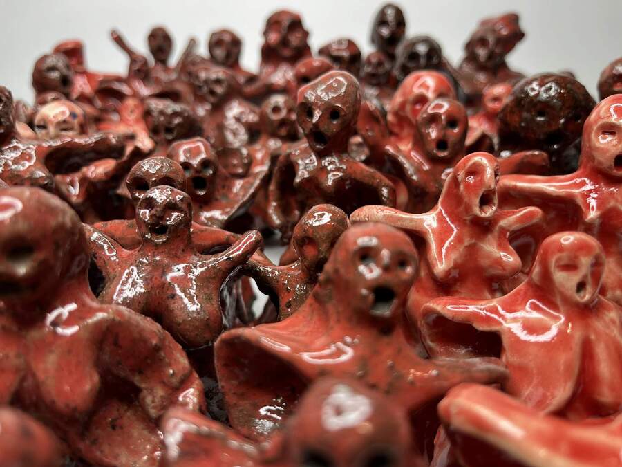 Фрагмент экспозиции проекта «Everything is terrible». Маяна Насыбуллова. «Война», 2022 г. Керамика. Фото: Иван Новиков-Двинский. Музей Вадима Сидура.
