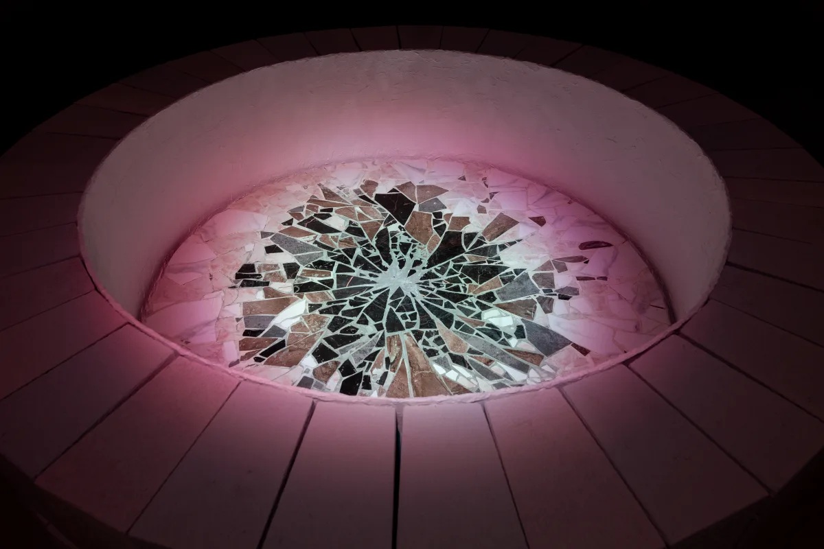 Маяна Насыбуллова создает пространство скорби, где взаимодействие с «темными воспоминаниями» о советском прошлом помогает найти путь через горе и печаль к исцелению. Чтобы двигаться вперед, необходимо сначала осознать прошлое. Вдохновляясь «традициями мемориальных ансамблей как символами и источниками исторической памяти» (из статьи «Памятник Памяти» галереи «Anna Nova»), Насыбуллова видоизменяет ключевые элементы, сохраняя при этом присущую советскому монументализму эстетику и уникальность.