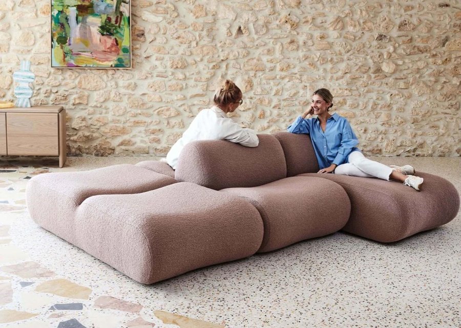 Довольно большое распространение модульная система получила и в дизайне диванов и кресел. Например, бренд «диванных конструкторов» Furnishd предлагает к покупке одинаковые модули в разных цветах, и покупатель может приобрести любое количество модулей и расположить их так, как того будет требовать интерьер или, допустим, визит гостей.