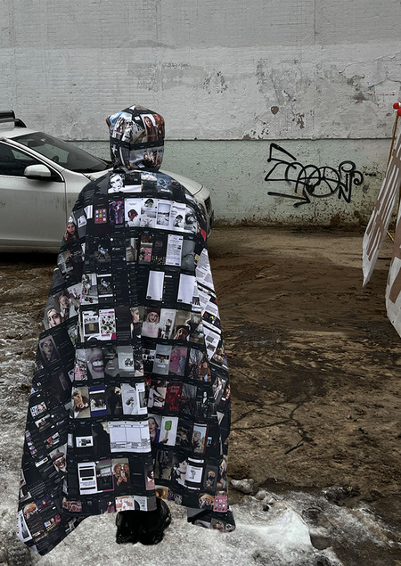 Одним из источников big data является интернет. Сколько контента я поглощаю за день, неделю, месяц? Сколько больших данных перерабатывается в моём телефоне? Я сделала плащ-невидимку из скринов всего контента, что я потребляла на протяжении нескольких недель, чтобы спрятаться от реальности.