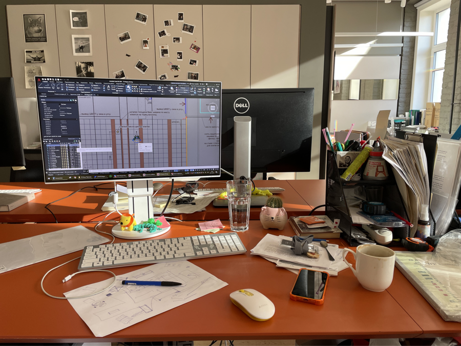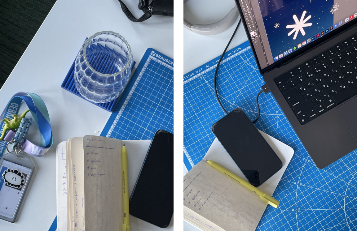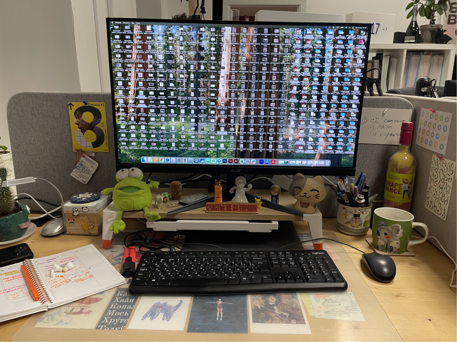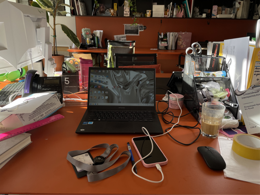 Рабочее место сотрудника креативного блока, Компания N3. Первое фото автора. Последующие фото участника исследования.