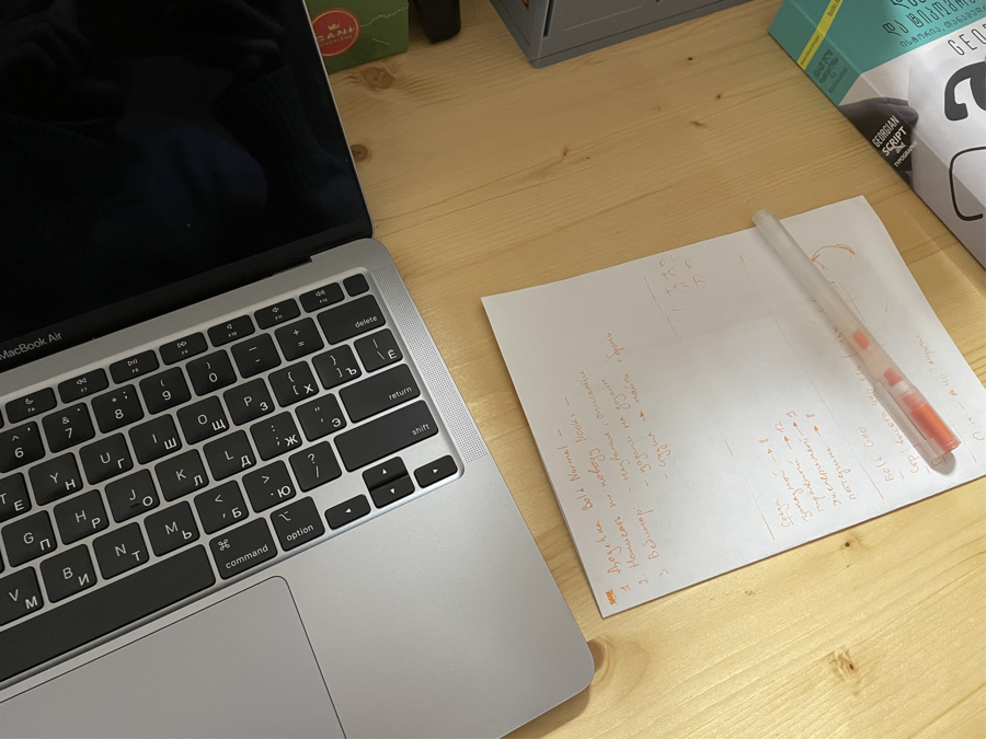 Рабочее место сотрудника креативного блока, Компания N2. Первое фото автора. Последующие фото участника исследования.