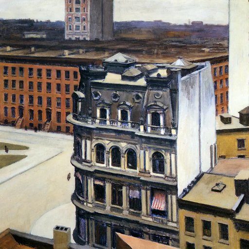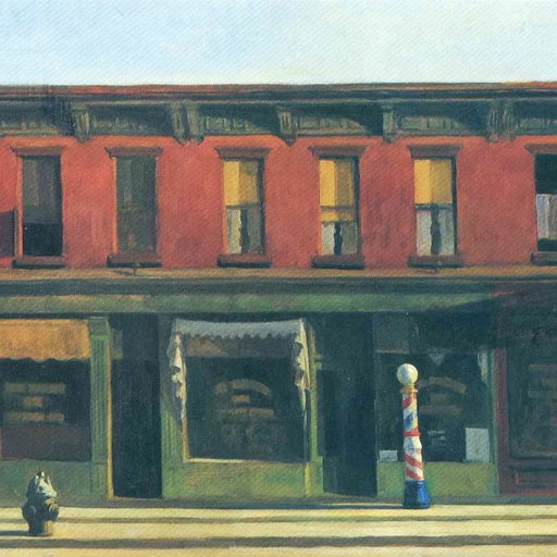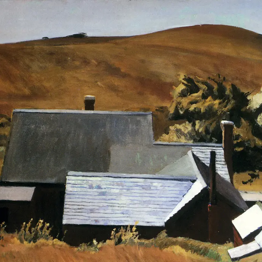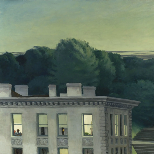 В итоге удалось сгенерировать следующие изображения, визуально соответствующие стилистике Эдварда Хоппера: