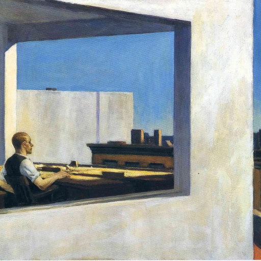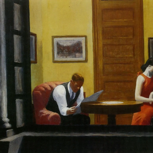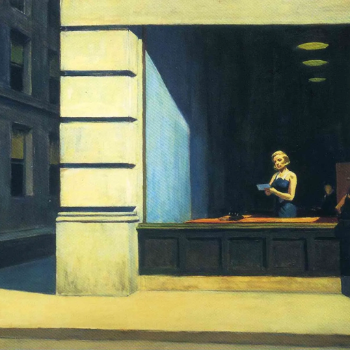Если анализировать живописный стиль Эдварда Хоппера, то, прежде всего, в глаза бросается особое внимание к состоянию человека в городской среде — персонажи Хоппера чаще всего изображены в изоляции, даже если находятся не в одиночестве. Он тонко передаёт отчуждение, эмоциональную дистанцию, внутреннюю замкнутость, словно подчёркивая, насколько одинок может быть человек в современной шумной городской реальности.