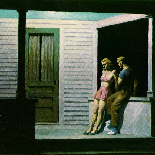 Идея моего проект — это генерация изображений в духе Эдварда Хоппера, в которых отражена атмосфера тишины, света и внутреннего напряжения, свойственные Хопперу. С помощью нейросети я создал сцены, визуально и эмоционально близкие к хопперовским — пустые улицы, кафе в полутьме, фигуры в одиночестве, мягкий свет из окон, геометрия зданий. Эти изображения можно будет использовать как обложки книг, для постеров, афиш или как иллюстрации к рассказам и музыкальным альбомам. Мне близка эта эстетика — ощущение застывшего момента, в котором больше смысла, чем в длинной истории.