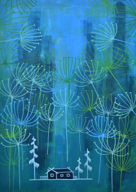 Пугающий и погружённый вглубь самого себя сюрреалистический постер «Гербарий» с интонацией тихого стылого ноября выполнен в традиционной технике (акриловая краска накаткой, акриловые маркеры, бумага на планшете). Главные герои постера — гигантские борщевики, прорастающие со всех сторон, заполняющие собой всё пространство, заполоняющие небо и землю.