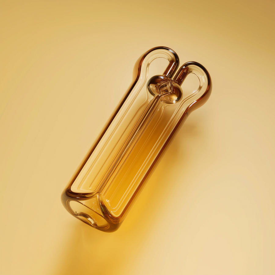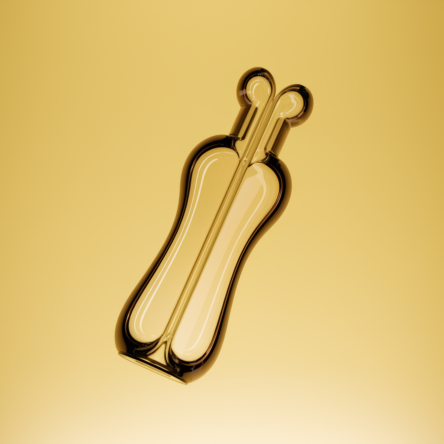 Промпт для создание упаковок и дополнительных составляющих: «3D rendering of a thin glass package for beauty medicine in a curved shape with curved edges on a yellow background. The overall design is elegant and minimalistic»