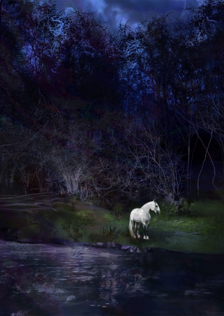 Дотронувщись до коня, третий ребёнок почувствовал как прилип к коню, прекрасный конь оказался келпи в страхе он достал ножик и отрезал себе палец, однако двое других детей не успели спастись и водный демон унес их на дно.