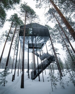 Гостиница «TreeHotel» включает в себя несколько отдельных проектов номеров. Различные архитекторы и бюро работают в симбиозе. Идея каждого номера абсолютно уникальна и новационна, однако их объединяет общая цель: создать экологичное пространство для жилья, которое будет резонировать с окружающей средой, расстворяясь в ней и погружая в нее человека. Воплощение детской мечты о домике на дереве в реальность.