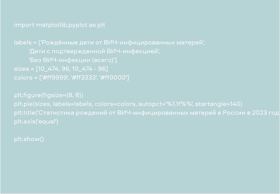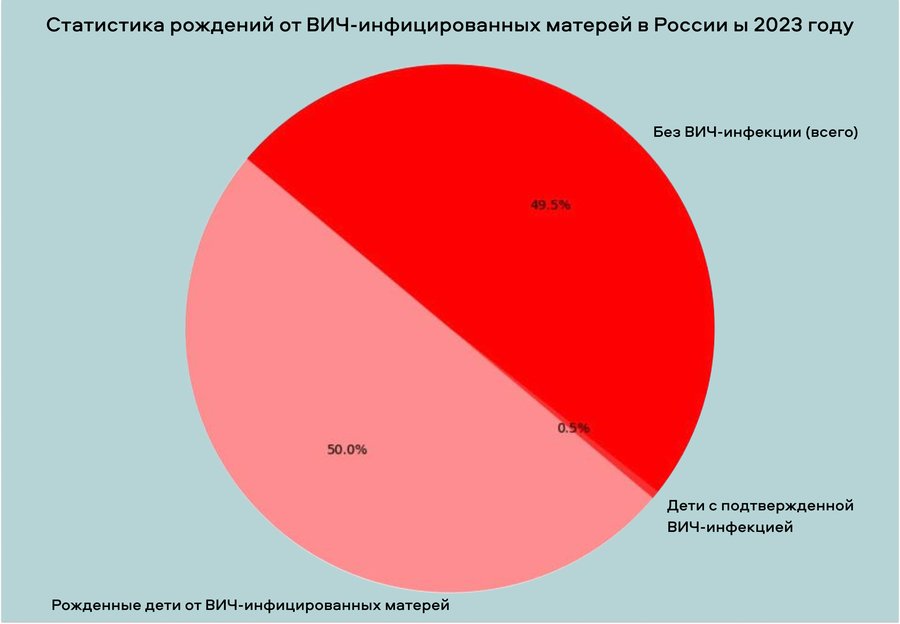 Круговая диаграмма показывает, что 0,5% детей родились с ВИЧ-инфекцией, от 50% матерей с заражением.