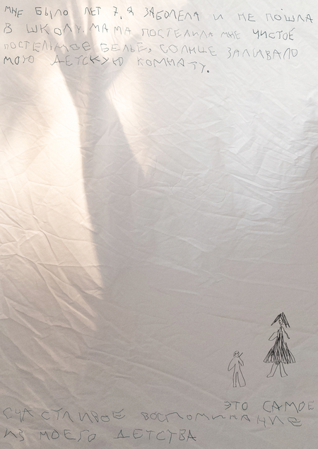 У меня есть детское воспоминание: как мама забрала меня с уроков из-за плохого самочувствия. Когда мы приехали домой, она уложила меня в кровать с только что поменянным, чистым постельным бельём. Было одиннадцать часов утра. Вся моя комната была залита солнцем, и когда я укрывалась белым, хрустящим, тёплым одеялом в его лучах, я чувствовала себя очень счастливой.