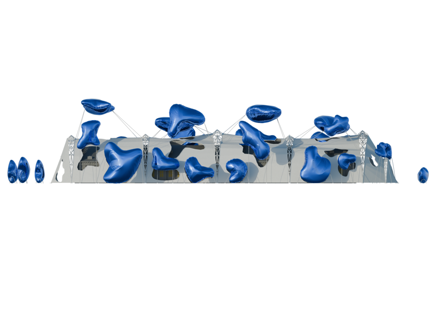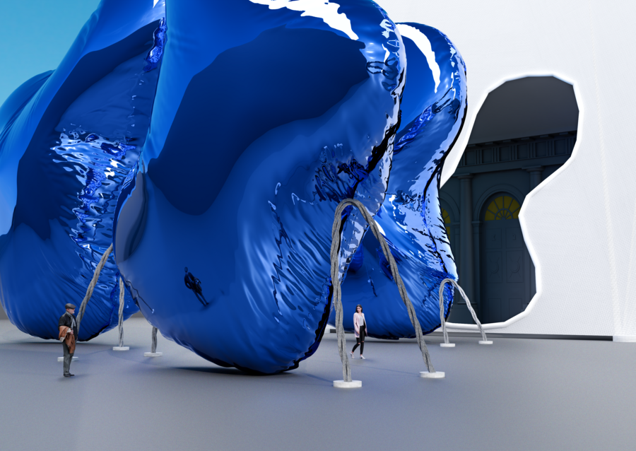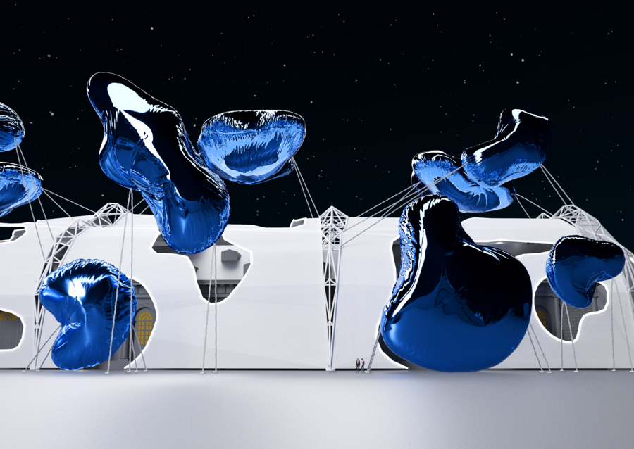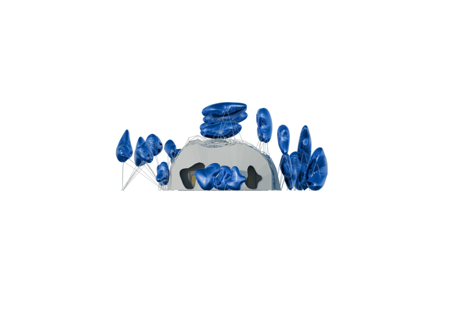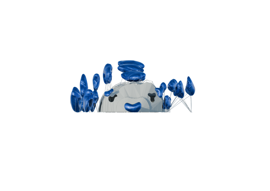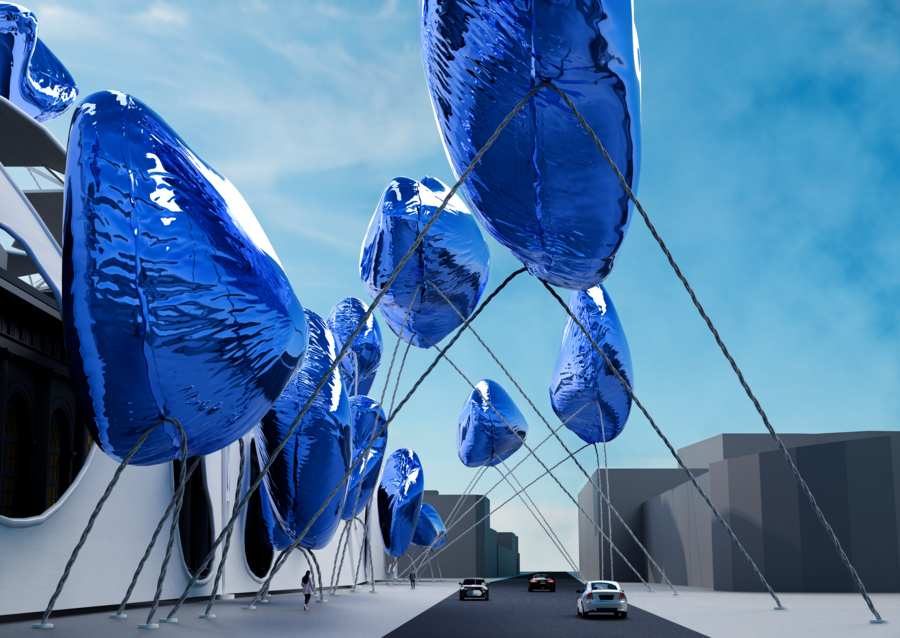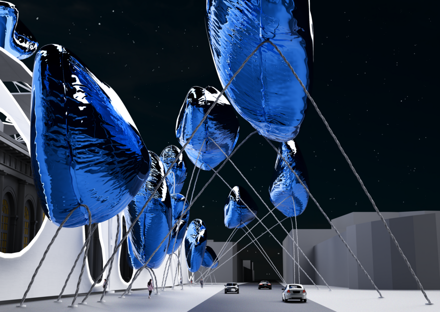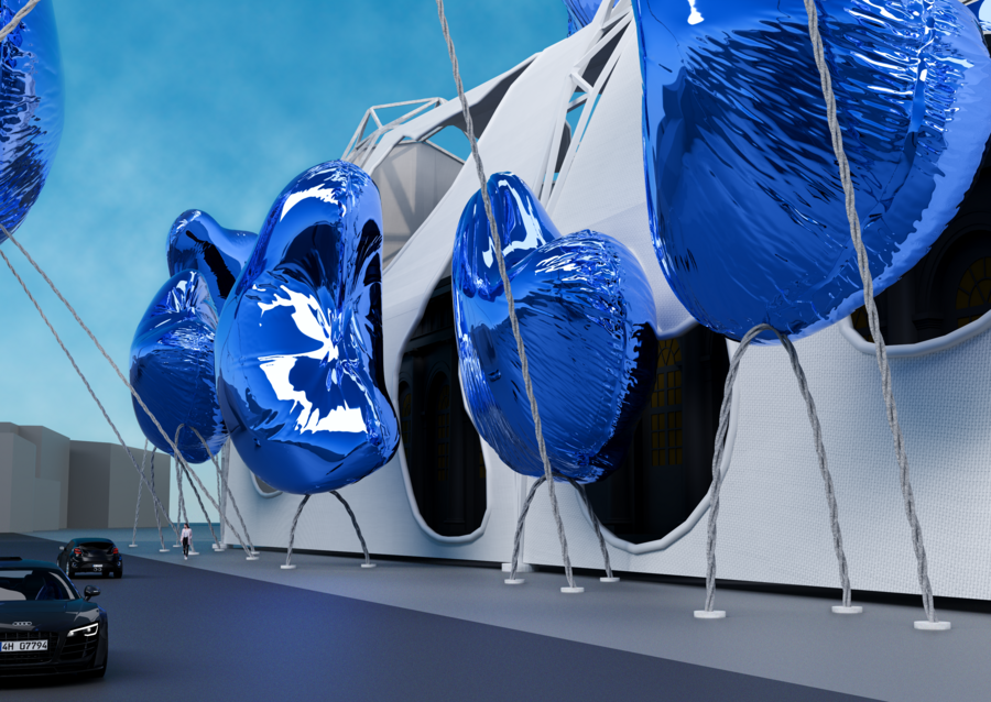 Однако сквозь эти самые отверстия пробиваются яркие фольгированные воздушные шары, которые олицетворяют надежду и веру в будущее, которые могут возродиться на фоне страданий. Эта концепция напоминает принцип мыльных пузырей: из небольшой капли жидкости, проходящей через отверстие, рождается нечто легкое, воздушное и невероятно красивое. Так и здесь — из боли и утраты возникает нечто новое, вдохновляющее и светлое.