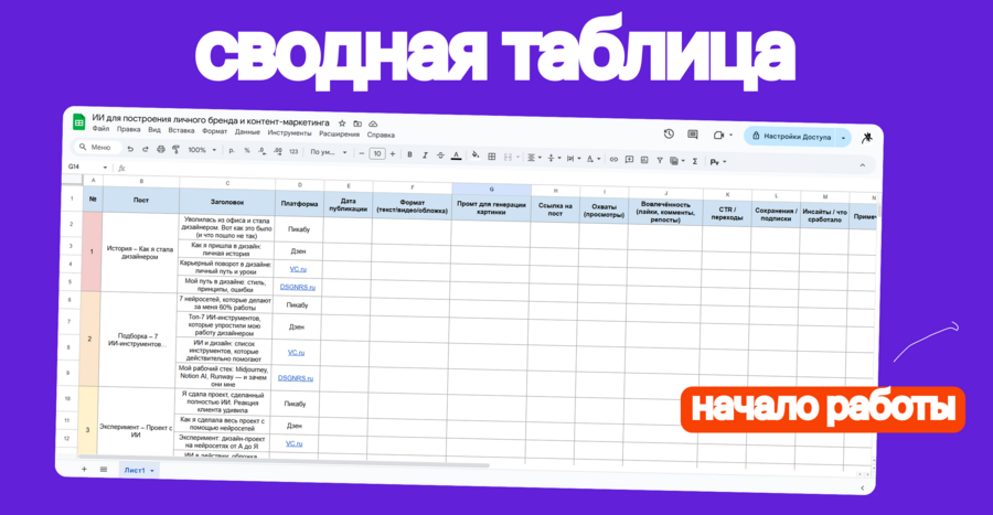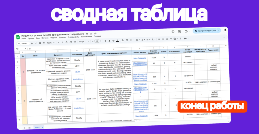 6. Google Sheets (в связке с AI-асистентами): сбор и первичная аналитика статистики;