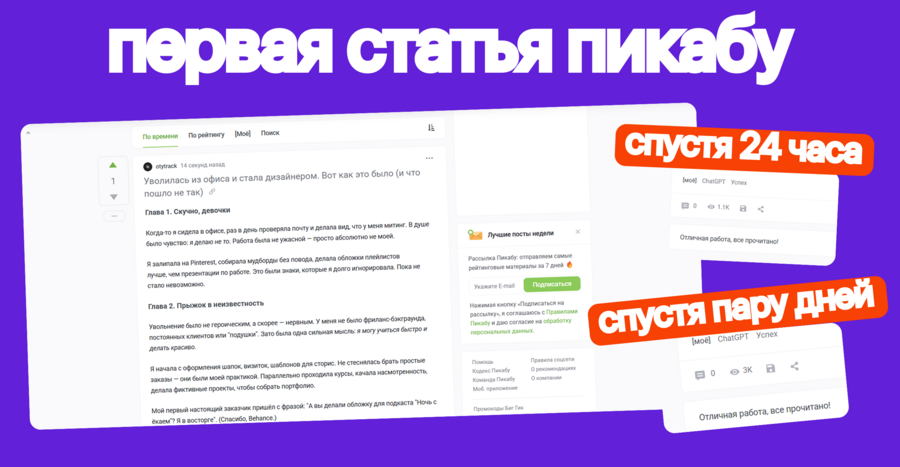 1. На Пикабу лучше заходят нарративы: «Уволилась из офиса — стала дизайнером. Вот как это было»