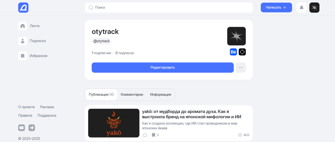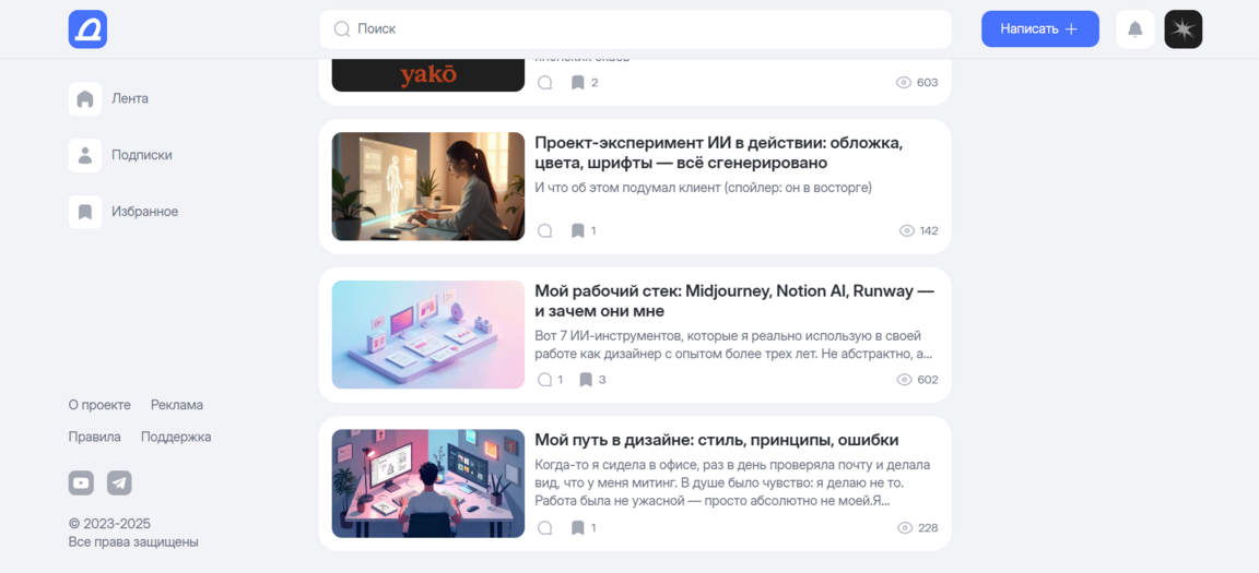 Вывод: DSGNRS — отличная платформа для профессионального позиционирования. Тут работают глубина, визуальный стиль и экспертность. Не для охватов, но для узнаваемости в среде.