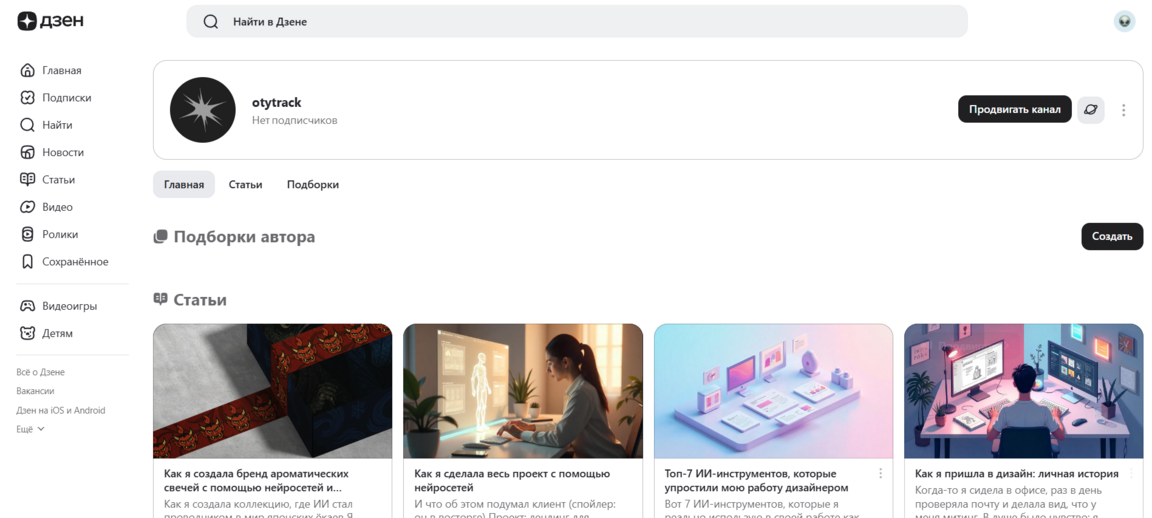 Но при всей аккуратности формат Дзена работает на подписную механику и долгосрочное прогревание аудитории. Без аудитории, без канала и алгоритмического доверия — статьи буквально не живут. Даже хорошо оформленный материал с иллюстрациями, фактами, японской мифологией и ИИ в брендинге собрал всего 16 показов. Ни одного комментария, ни одной подписки.