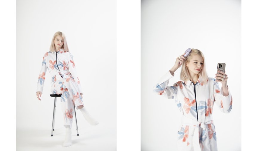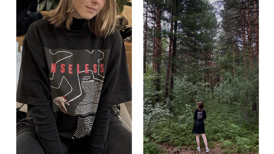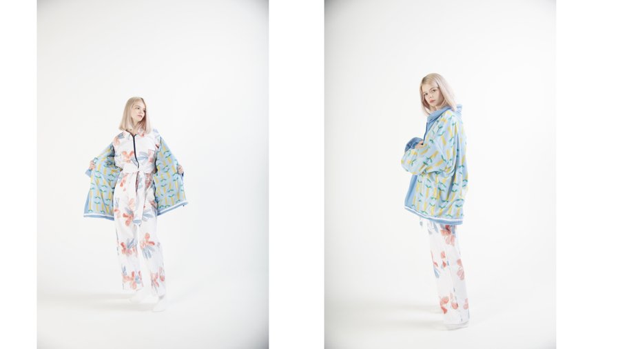 3.2. Nomta — собственный бренд, в основе философии которого лежит ощущение ностальгии. Темой капсульной коллекции становится ностальгия о детстве. Основой принтов становятся мои личные детские рисунки. Конструктивная особенность рукавов бомбера заключена в их форме — в них как будто бы включен силуэт детских стульев, часто служивших каркасом для построения «детских домов» из одеял и подушек.