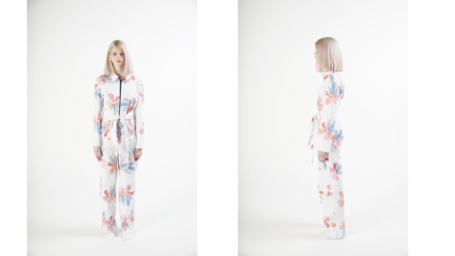 Комбинезон с цветочным принтом на поясе и молнии. Размер S, рост от 175 см. Состав: 50% хлопок, 50% полиэстер