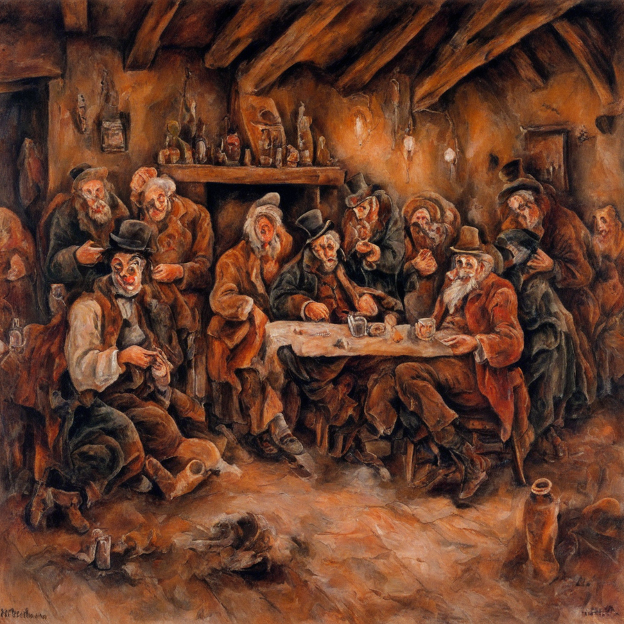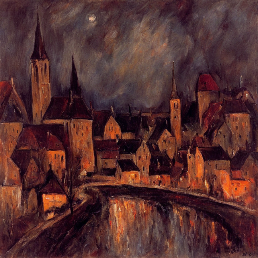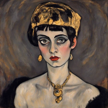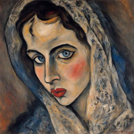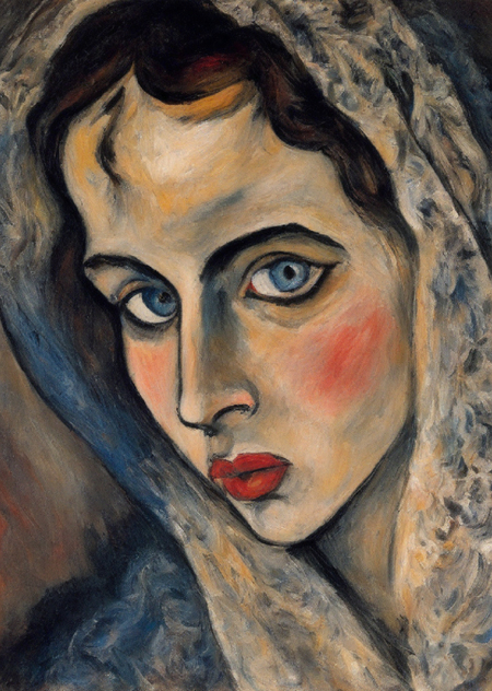 Промты: «in ALBERT BLOH PAINTINGS style portrait of a man», «in ALBERT BLOH PAINTINGS style, a melancholic young woman with piercing blue eyes, her face half-shrouded in dramatic shadows, wearing a»