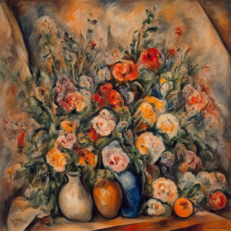 В завершение, обученная LoRA используется для создания новых изображений, перенимающих визуальные характеристики произведений великого художника.