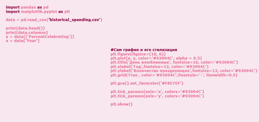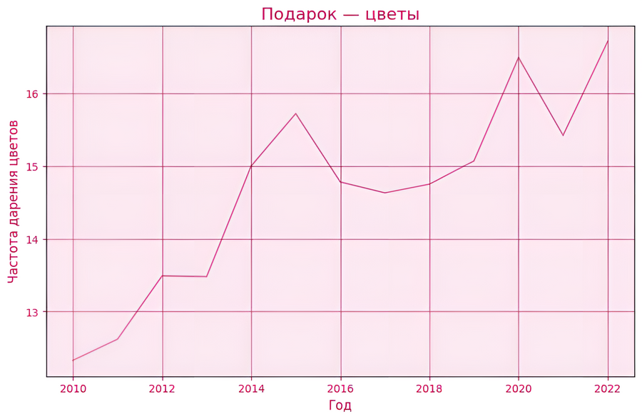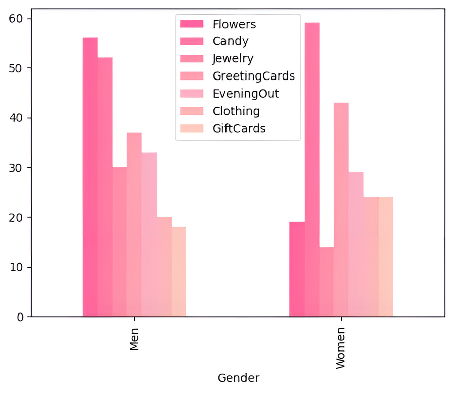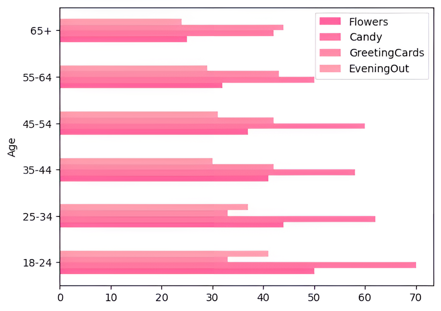С этим выбором типов подарков мне помогли созданные мной графики на основе нескольких датасетов с темой дня всех влюбленных.