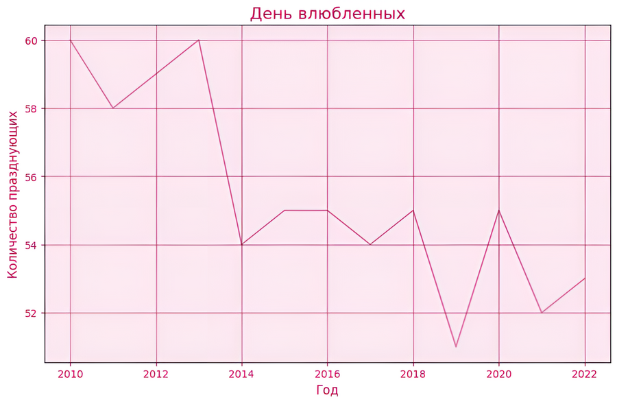 Разница между годами не такая большая, но в 2022 году праздновало в этот день меньше человек, чем, например, в 2010 году.