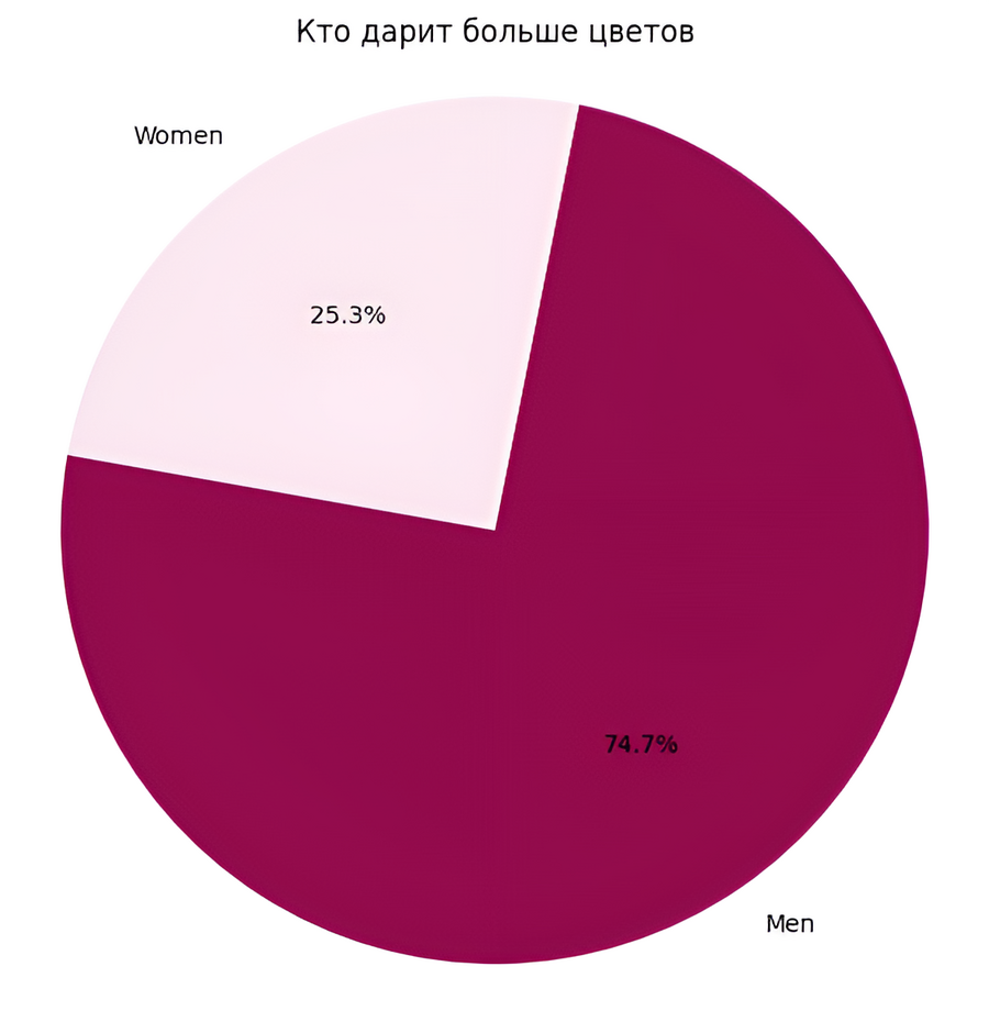 Видно, что мужчины дарят женщинам больше цветов, а женщины мужчинам — конфет. Но график пока что не очень понятный. Хочется его детальнее рассмотреть.