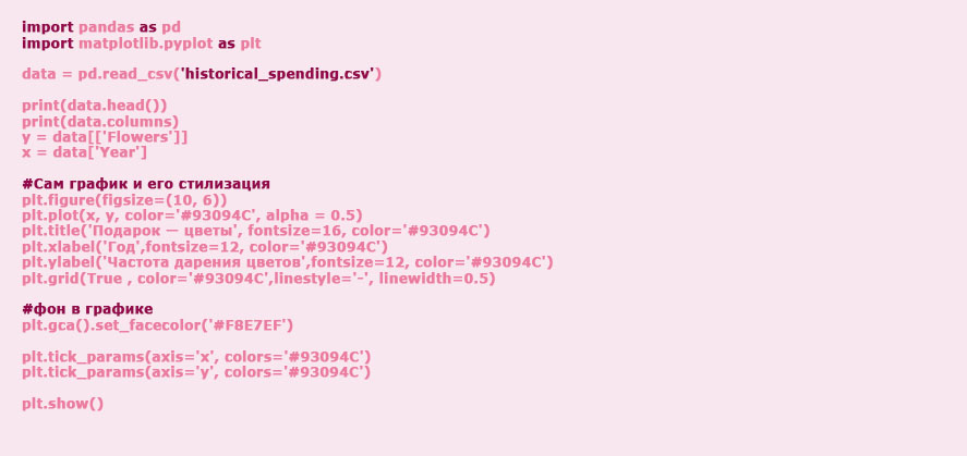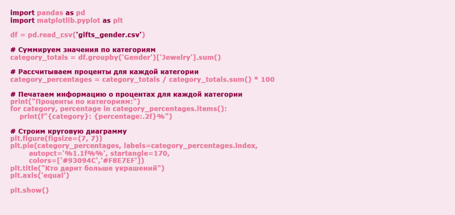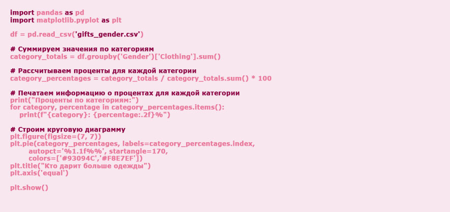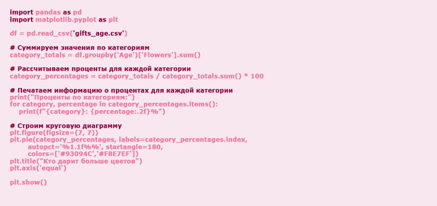 что спрашивала: — как соединить две разные таблицы в одну в пайтоне через pandas? — необходимо создать круговую диаграмму на пайтон, проанализировав данные из historical_spending.csv и дать информацию с процентами о цветах, конфетах и одежде (которые дарили в день святого валентина)