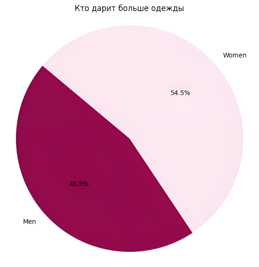 Я создала несколько круговых диаграмм, чтобы посмотреть в процентном соотношении, кто больше чего дарит.