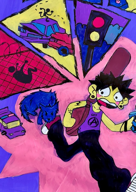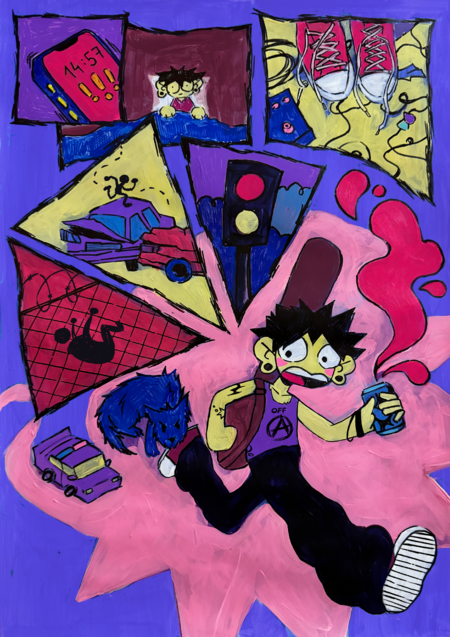 Первый герой, будучи не самым ответственным гитаристом, опаздывает на репетицию, и как назло, по пути случаются всевозможные неприятности.