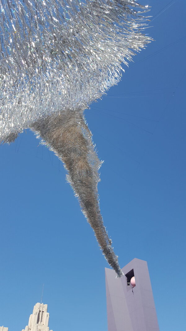 Эта инсталляция «Descension» Аниша Капура изображает текучесть и движение воды, погружающейся в воронку диаметром 8 метров, создавая завораживающее зрелище. Произведение вызывает разные чувства и интерпретации у зрителей, от бренности человеческого существования до портала в иной мир. По мнению самого художника, бассейн также символизирует текущую политическую ситуацию в Америке, на что художник активно обращает внимание, создав коалицию для противостояния правому популизму через искусство.
