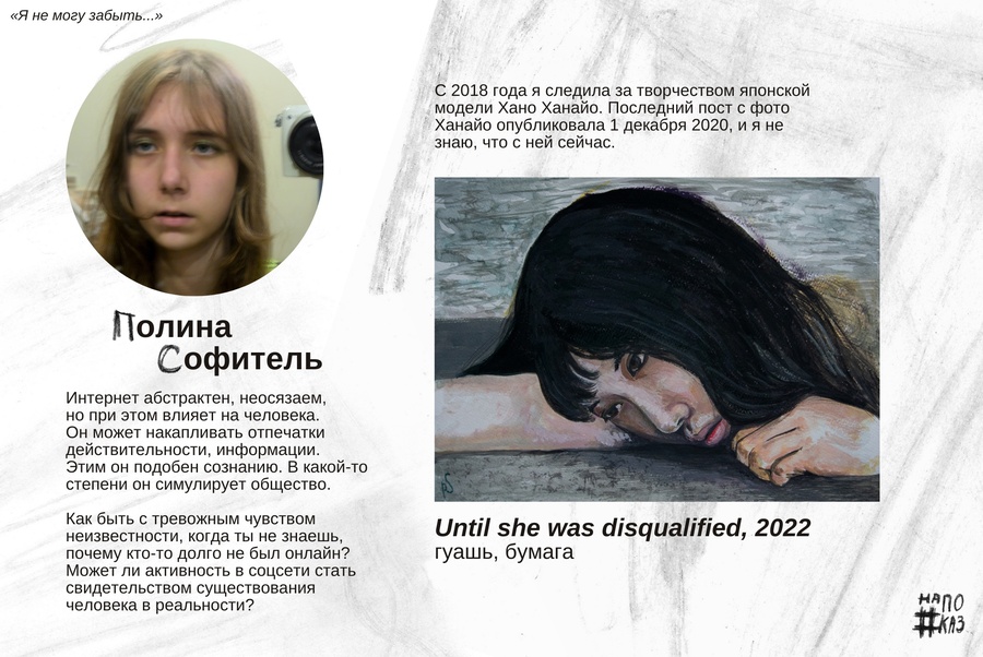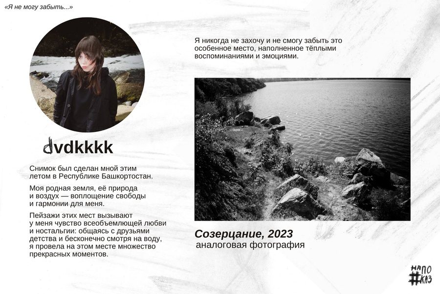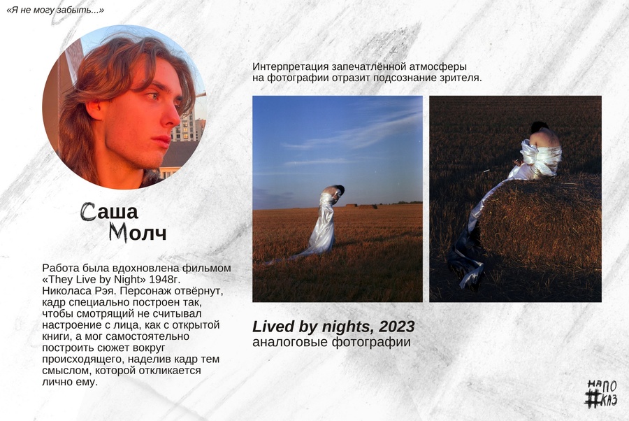 «Я не могу забыть» — выставка, созданная при поддержке Школы коммуникаций студенческой организацией #НАПОКАЗ, концепция которой заключается в возможности творческого самовыражения для студентов НИУ ВШЭ вне зависимости от факультета и образовательной программы. Организация стремится поддержать талантливых студентов, которые самостоятельно изучают, развиваются и искренне любят то, что делают.