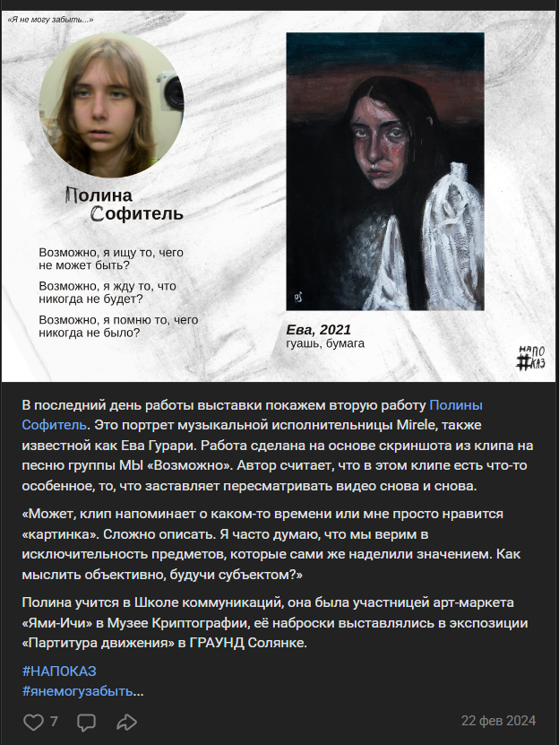 Архив публикаций о выставке «Я не могу забыть…» в сообществе #НАПОКАЗ в ВК