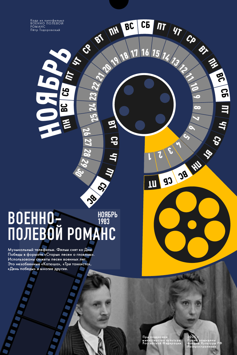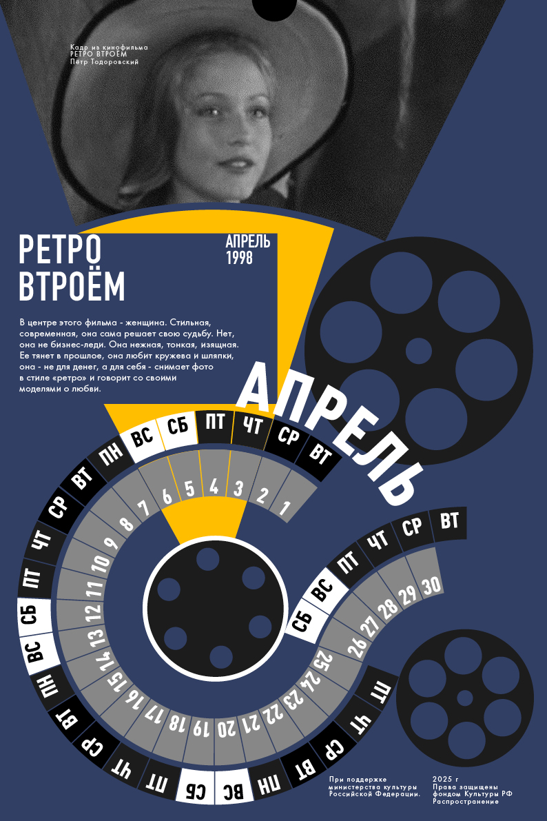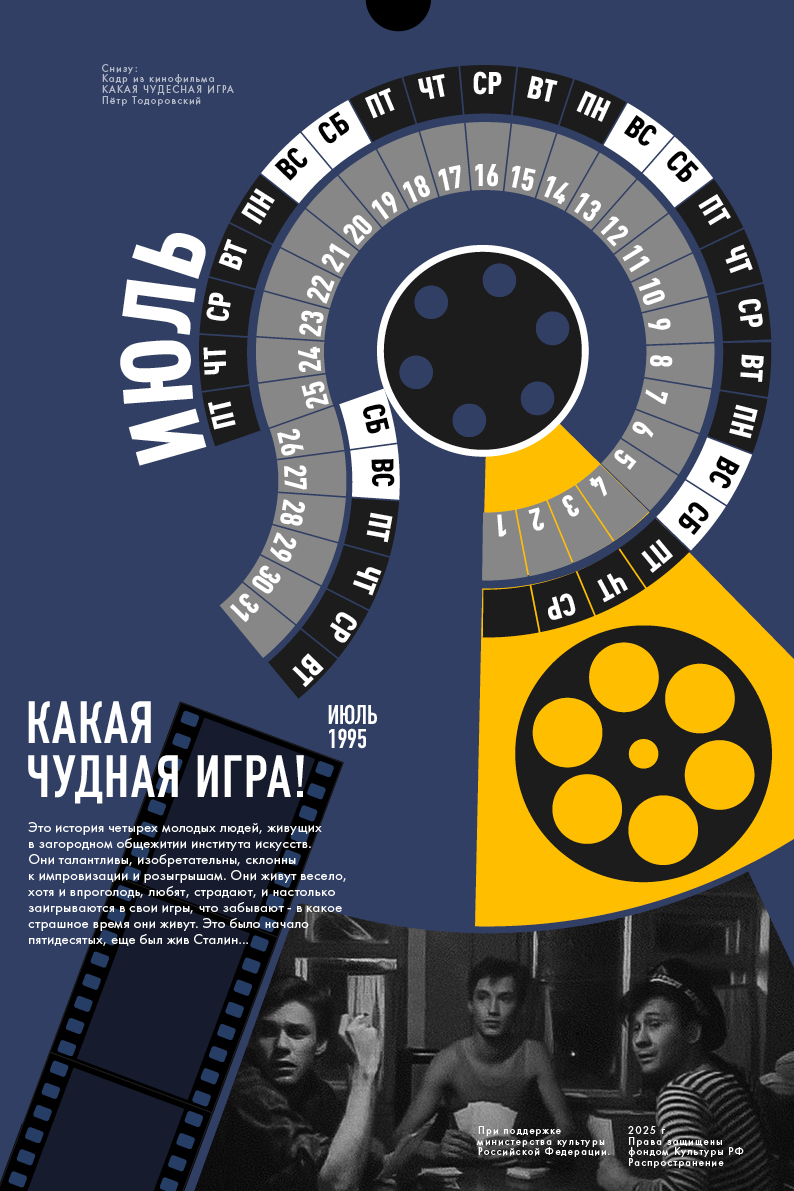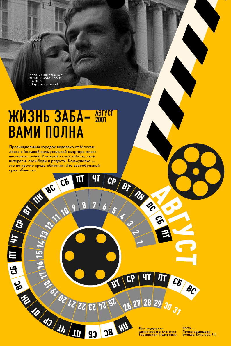 Календарь представляет собой биографию Петра Тодоровского, с важными датами из его жизни, которые плотно переплетены с кинофильмами и режиссерскими работами.