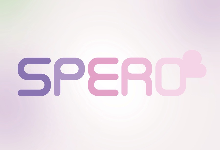 Для GPT: опиши логотип проекта «Spero» — интерактивный игрушечный робот, тематика бренда — дети, яркие неоновые цвета: голубой, розовый, забавные символы: цветы, звезды. Логотип на светло-голубом фоне